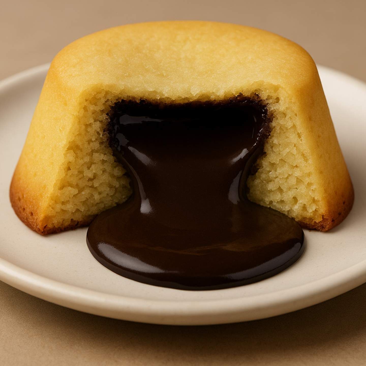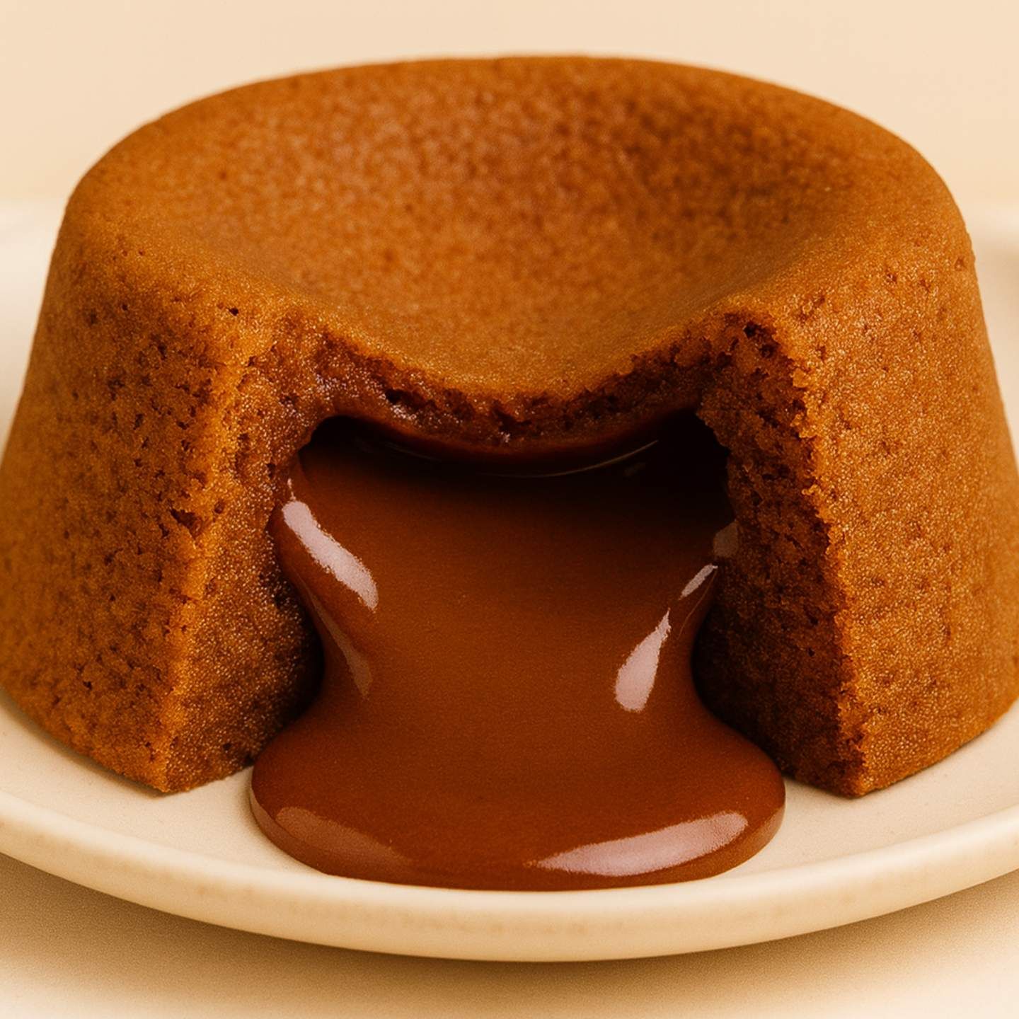 A light caramel sponge with a flowing golden caramel center, perfectly baked for a sweet, buttery, and indulgent finish.