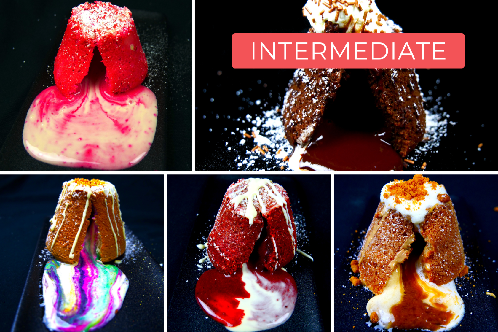 Learn to bake rich lava cakes in just 6 weeks. From classic dark chocolate to fruity and colorful variations, you’ll master gooey centers, soft sponges, and bakery-quality finishes that make every cake a showstopper.